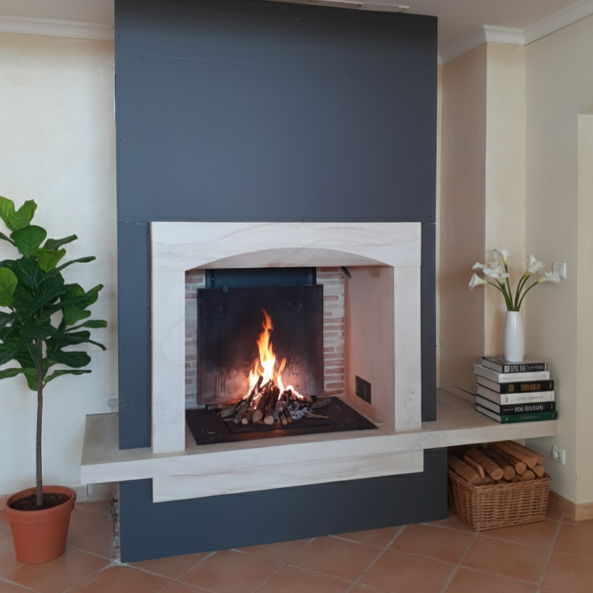 Vous gardez le plaisir d’une belle flambée en foyer ouvert avec la possibilité à tout moment de passer en fonctionnement poêle à bois avec tous ses avantages : Sécurité, rendement, combustion propre et écologique, diffusion d’air chaud…